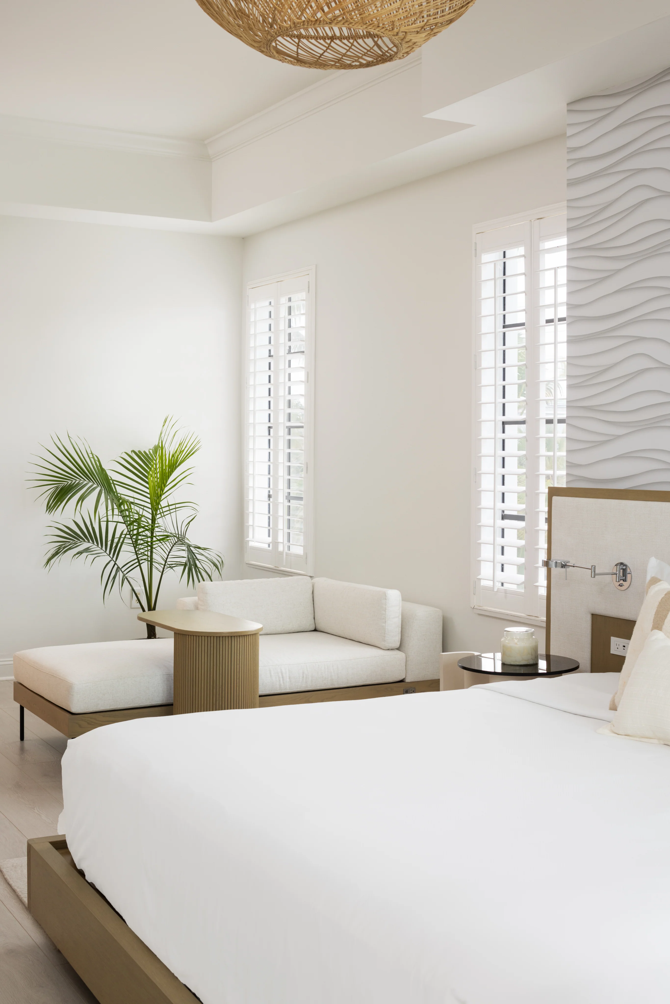 Experience the epitome of luxury at Hotel Zamora with our One-Bedroom Grandeur Suite. Reflecting the coastal elegance that defines St. Pete Beach, this suite showcases seamless indoor/outdoor living with a large living area that includes cozy sofa beds. Indulge in two full bathrooms featuring spa showers for ultimate relaxation, and retreat to the serene king bedroom, which also boasts an additional sofa bed. Step onto your private balcony and soak in the breathtaking water views. Designed to be both transitional and transformative, this suite caters to the solo traveler seeking ample space or serves as a secluded retreat for couples. With generous square footage, it’s the perfect getaway for friends or family to create unforgettable memories together.