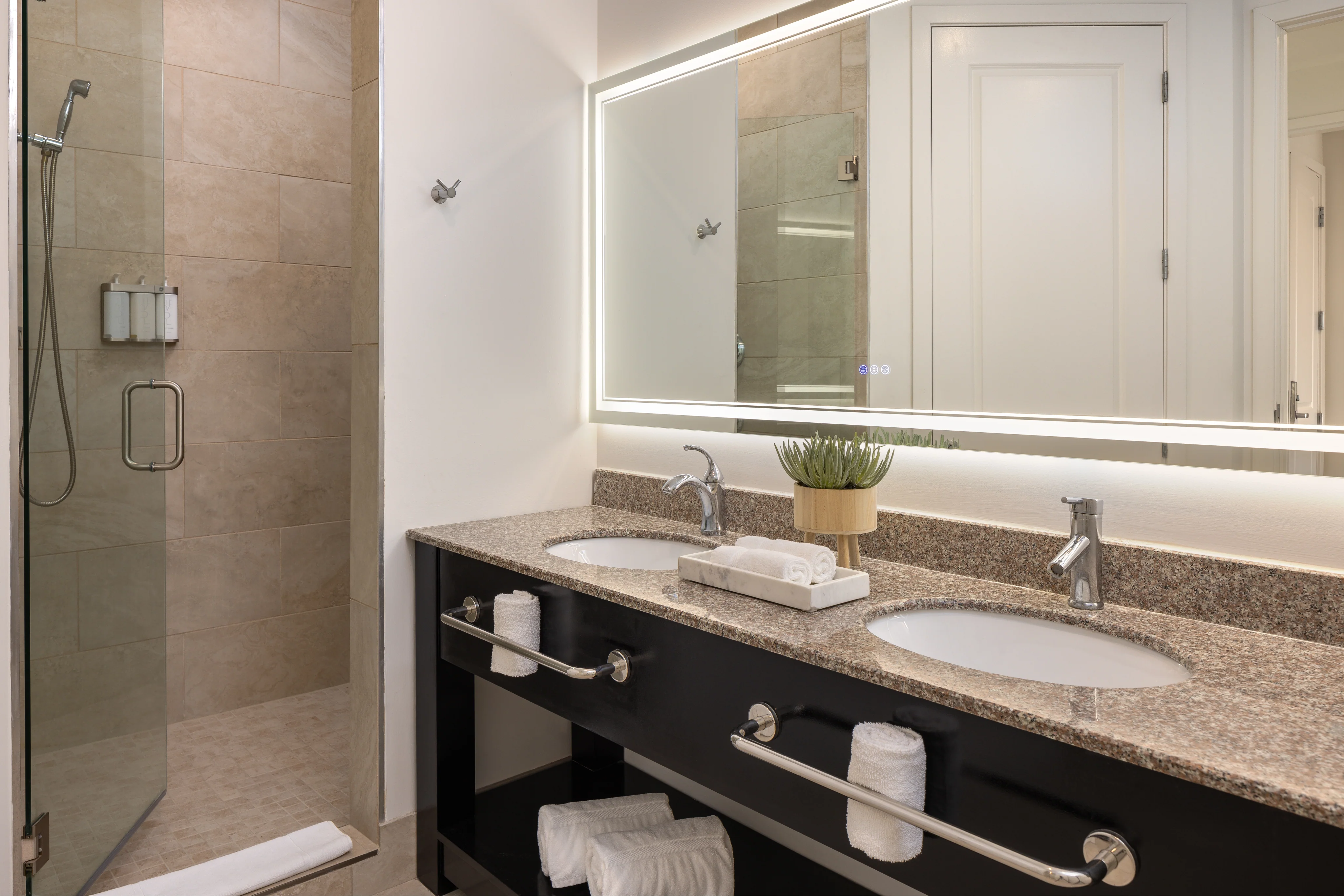 With its generous layout and luxurious furnishings, this room features two queen beds and a comfortable living area, perfect for relaxation and rejuvenation. Revel in the stunning views of the Intracoastal Waterway, providing a breathtaking backdrop for your stay. Unwind in the plush queen beds, surrounded by elegant decor that elevates your experience. After a day of exploration, treat yourself to the spacious spa shower, where you can wash away the day’s adventures and refresh your senses. Whether you’re enjoying your morning coffee while soaking in the picturesque views or toasting the evening with a glass of wine in your living area, this enchanting setting transforms every moment into a treasured memory.